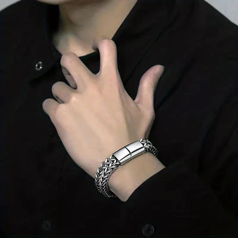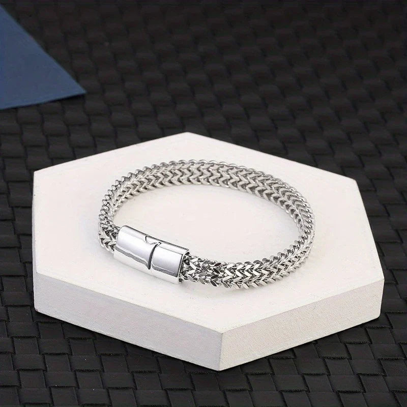 Autour d’un Style vous présente Nael, un bracelet tressé argenté au design sophistiqué et moderne. Conçu pour l’homme qui recherche à la fois distinction et force, Nael sublime chaque geste par son éclat métallique.