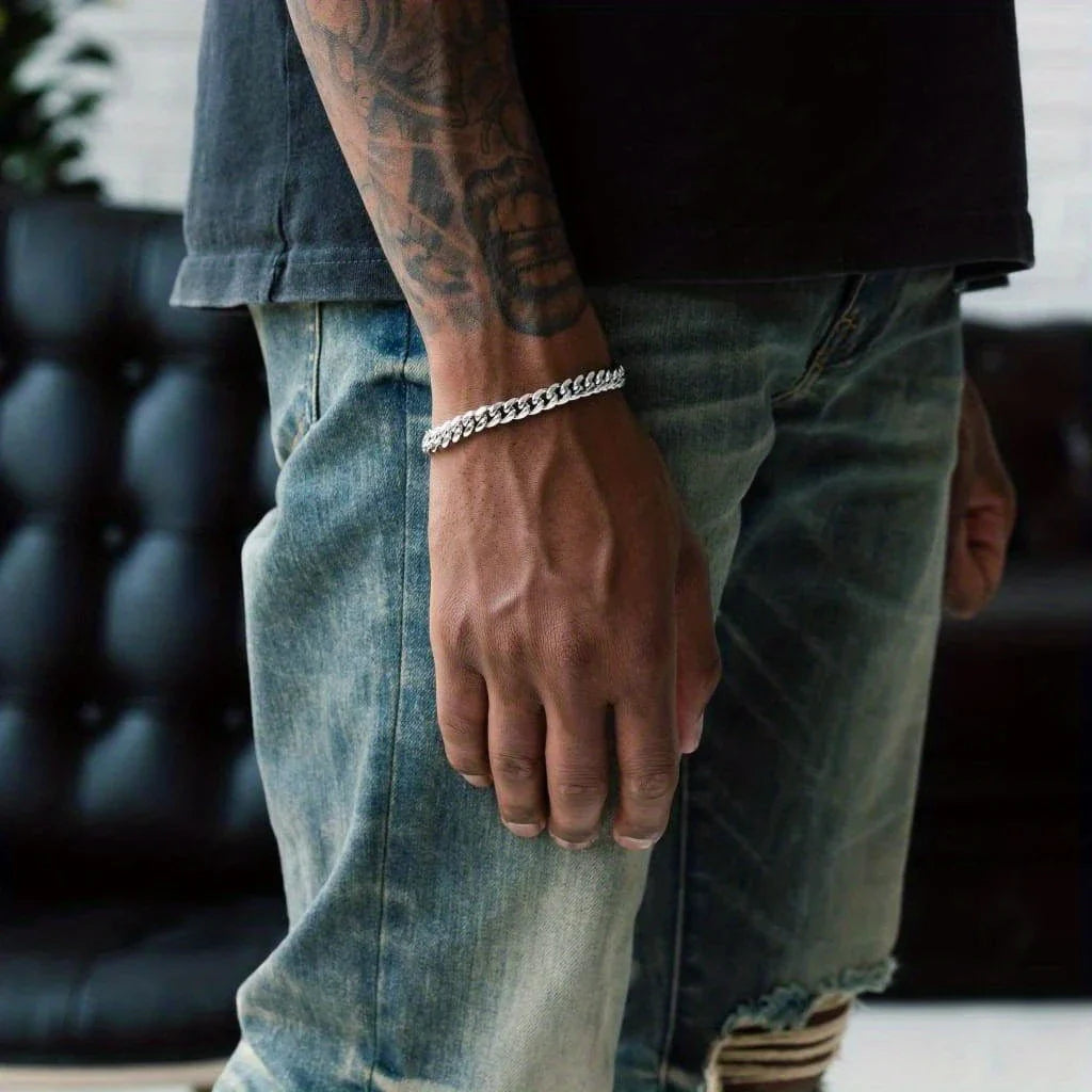 Autour d’un Style vous présente CHAÎNEL, le bracelet à chaîne argentée conçu pour les hommes modernes. À la fois robuste et raffiné, CHAÎNEL est l’accessoire idéal pour rehausser toutes vos tenues.