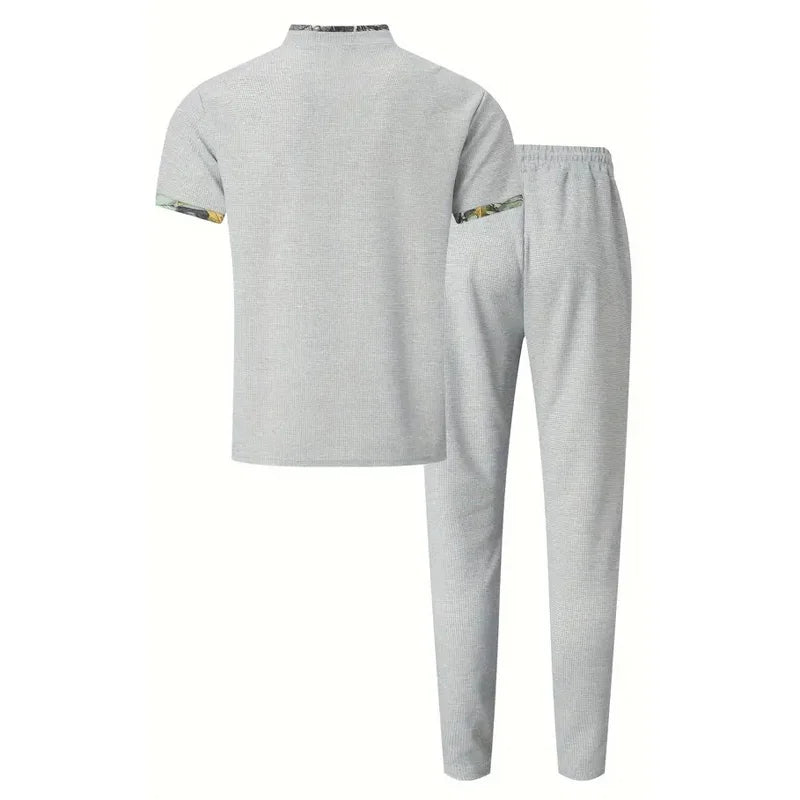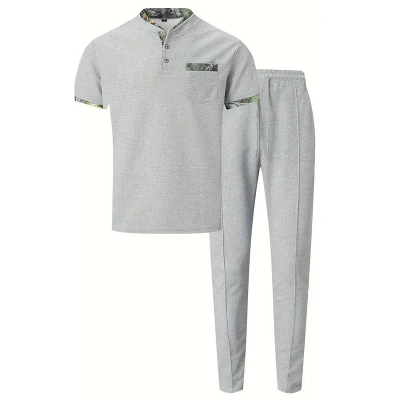 👕 T-shirt henley à manches courtes avec col imprimé